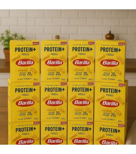 Con 12 confezioni da 400g di fusilli proteici Barilla Protein+, ottieni una scorta da 4,8 kg per una cucina sempre pronta a offrire gusto e nutrizione. Perfetta per famiglie numerose, cucine professionali, piani alimentari settimanali o attività sportive. Con 20g di proteine per 100g, questa pasta è fonte di energia vegetale da legumi, senza rinunciare alla qualità del grano duro e alla classica lavorazione Barilla. Trafilata al bronzo, cuoce in 12 minuti, assorbe bene i sughi e garantisce un’ottima resa. ...