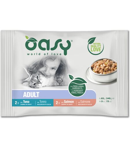 wonderfood spa Oasy Gatto Bocconcini Multipack Adulto Tonno+Salmone Cf. (4X85) Gr