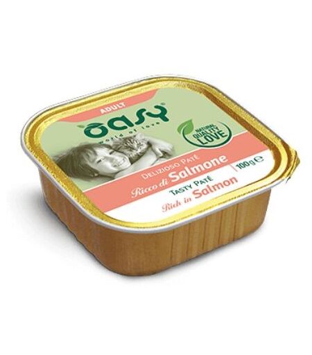 Oasy Cat Delizioso Patè Adult con Salmone Vaschetta 100 g