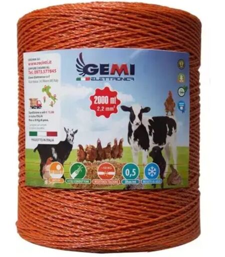 GEMI ELETTRONICA Filo Conduttore 2000 MT 2.2 Mm² Per Recinto Elettrico Recinti Elettrici Recinti Elettrificati Recinzioni Elettrificate Per Animali Cani Mucche