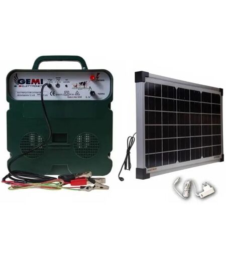 GEMI ELETTRONICA Elettrificatore B/12 Extra Forte Con Pannello Solare Doppia Alimentazione 12 v (a Batteria) / 220V Per Recinto Elettrico Recinzione Elettrica Per