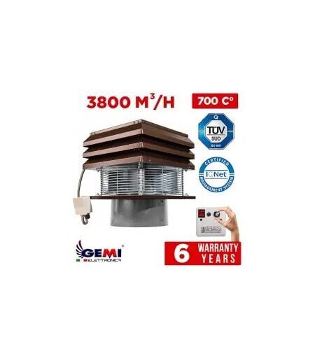 ASPIRATORE PER CAMINO GEMI ELETTRONICA Modello Professionale con Canna Fumaria Tonda con diametro da 30 cm PRODOTTO CERTIFICATO a norma di legge TUV e CE VALORI TECNICI VERIFICATI DALL'UNIVERSITÀ UNIBAS (dal prof. e. nino del dip. di ingegneria e fisica dell'ambiente) RESISTE A 700 C° ASPIRAZIONE DI 3800 M³/h REGOLATORE A 6 VELOCITÀ (autotrasformatore) 6 ANNI DI GARANZIA GRIGLIA DI PROTEZIONE ROBUSTA ANTI-VOLATILE IN ANELLI DI ACCIAIO ELETTROSALDATO (conforme alla norma uni iso 13857) CAPPELLO COPRIMOTORE IN LAMIERA VERNICIATO A POLVERE EPOSSIDICA DI COLORE RAME SCURO AD EFFETTO MARTELLATO PRODOTTO DAL 1983 RESO GRATUITO per 100 GIORNI PREZZO DI FABBRICA (senza intermediari) RECENSIONI VERIFICATE SU TRUSTPILOT Ideale per: Stufe, Forni, Rosticcerie, Pizzerie, Barbecue, Cappe industriali Cappello coprimotore in lamiera verniciato a polvere epossidica di colore rame scuro ad effetto martellato garanzia di resistenza nel tempo dagli agenti atmosferici. Griglia di protezione robusta ...
