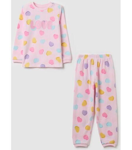 OVS KIDS, Pigiama In Velour Stampa Cuori Multicolor, Bambina, Rosa, Taglia: 3-4