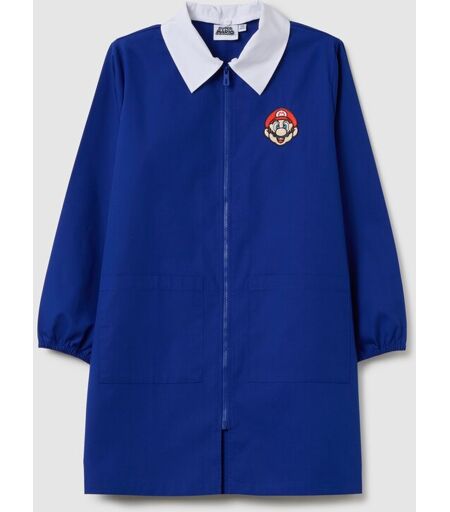 NINTENDO, Grembiule Scolastico Da Bambino In Misto Cotone Blu Con Patch Super Mario, Multicolor, Taglia: 13-14