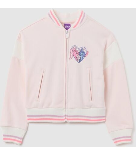 Disney Giacca Bomber Da Bambina In Cotone Rosa Regular Fit Con Stampa Stitch, Rosa, Taglia: 5-6
