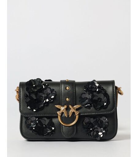 Pinko Borsa Baby Love Bag Slouchy in pelle con fiori gioiello Nero Taglia OS