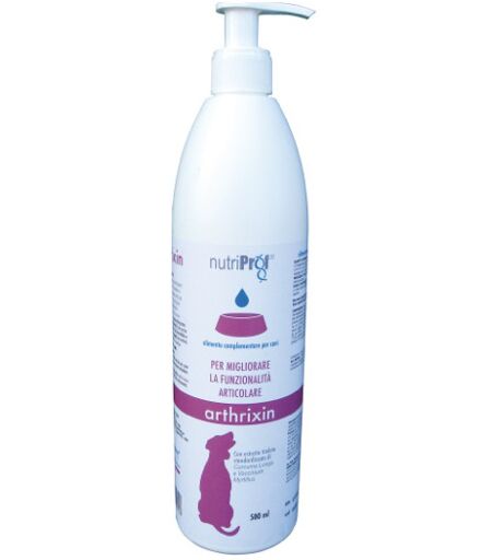 arthrixin Alimento complementare in gel appetibile per cani con doppia azione: • Attività antinfiammatoria e antiossidante per prevenire e attenuare i fenomeni di degenerazione delle cartilagini articolari. • Azione nutritiva della cartilagine per favorire la funzionalità delle articolazioni. È adatto a tutti i cani, non ha effetti collaterali o controindicazioni ed e efficace sia in prevenzione che come supporto terapeutico. Indicazioni d'uso: • prevenzione della degenerazione articolare dovuta all'età, all'attività fisica o alla predisposizione dei soggetti. • Come supporto alle terapie per le artrosi. • Per alleviare la dolorabilità dovuta a processi infiammatori e degenerativi della cartilagine articolare. • Per migliorare la funzionalità articolare e rallentare la degenerazione della cartilagine. • Per migliorare la mobilità nei soggetti affetti da artrosi. Modalità d'uso Arthrixin si dosa in erogazioni e può essere mescolato all’alimento, offerto con un biscotto o snack o anche somministrato da solo nella bocca del cane. Flacone 500 ml: una erogazione ogni 6 kg di peso vivo/giorno. Durata trattamento • Prevenzione: 40 giorni consecutivi, 2 volte all'anno. • Supporto terapeutico: almeno 50 giorni consecutivi. Attivi caratterizzanti Curcumina e fitocomplesso da Curcuma Longa; antocianosidi e fitocomplesso da Vaccinium Myrtillus; glucosamina HCl; condroitin solfato; DL α-tocoferolo acetato; solfato di manganese; metionina DL. Componenti analitici Umidità 77,0%, proteina grezza 7,2%, oli e grassi grezzi 0,1%, fibra grezza 5,3%, ceneri grezze 3,0%. Formato Flacone da 500 ml. ...