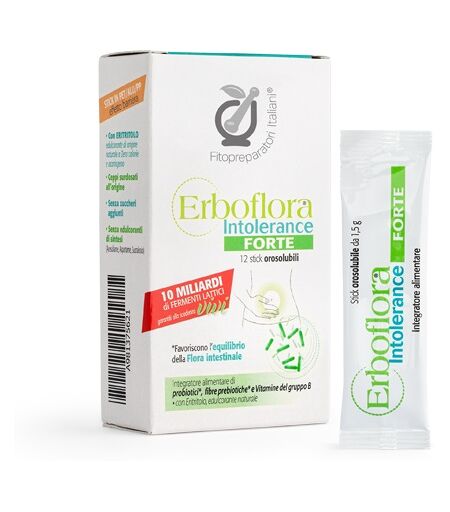 Selerbe Erboflora Intollerance Forte 12 StickIntegratore di 10 Miliardi di Fermenti Lattici ViviDescrizioneà un integratore alimentare di probiotici, fibre prebiotiche e Vitamine del gruppo B CHE favoriscono lâequilibrio della flora intestinale. ...
