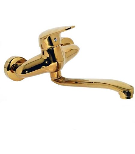DRIWEI Rubinetto Miscelatore Parete Lavello Cucina Oro Lucido Canna Lunga Due Fori 183G