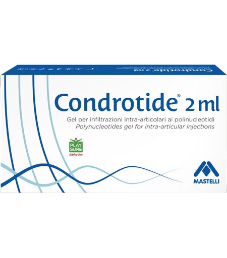 Condrotide 2 ml - Descrizione Dispositivo medico. Gel per infiltrazioni intra - articolari ai polinucleotidi. Soluzione viscoelastica, trasparente, incolore: si presenta sotto forma di siringa divetro, pre - riempita, sterile, apirogena, monouso, contenente 2 ml di soluzione. Ipolinucleotidi sono a… ...