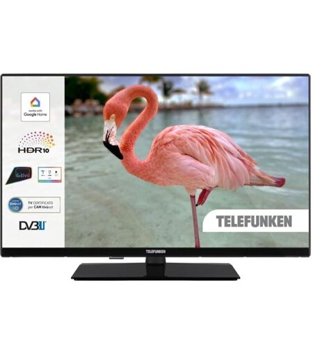 Telefunken TE32750B45V2D. Dimensioni schermo: 81,3 cm (32"), Risoluzione del display: 1366 x 768 Pixel, Tipologia HD: HD, Tecnologia display: DLED, Forma dello schermo: Piatto. Smart TV. Luminosità schermo: 250 cd/m², Tempo di risposta: 8,5 ms, Rapporto di contrasto: 200:1. Formato del segnale digitale: DVB-C, DVB-S2, DVB-T2. Wi-Fi, Collegamento ethernet LAN. Colore del prodotto: Nero ...
