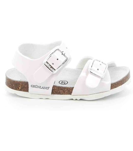 Un plantare flessibilie in sughero e tomaia bianca, questo sandalo primi passi in vernice sarà il migliore compagno della tua bimba. ...