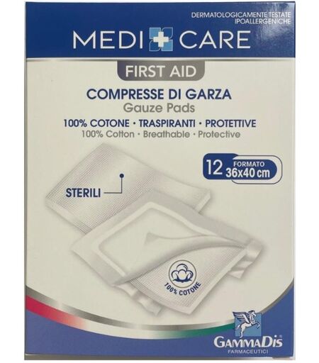 Gammadis Farmaceutici Srl Garza Cotone 36x40cm 12 Pezzi - MedCare - Garze Sterili per Medicazioni e Cura delle Ferite