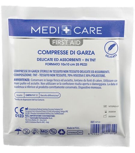 - DESCRIZIONE PRODOTTO - Le Garze Tnt MedCare da 10x10cm, in confezione da 25 pezzi, sono progettate per offrire una soluzione igienica e affidabile per medicazioni quotidiane. Realizzate in materiale non tessuto (TNT), queste gar… ...