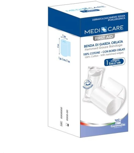 Benda in garza di cotone idrofilo, morbida e traspirante per lesioni e ferite - DESCRIZIONE PRODOTTO: - Benda Orlata 10x5 m è un dispositivo medico utile per medicazioni e bendaggi di ferite, abrasioni, escoriazioni o lesioni cutanee. Realizzata in garza di puro cotone idrofilo, questa benda è morb… ...