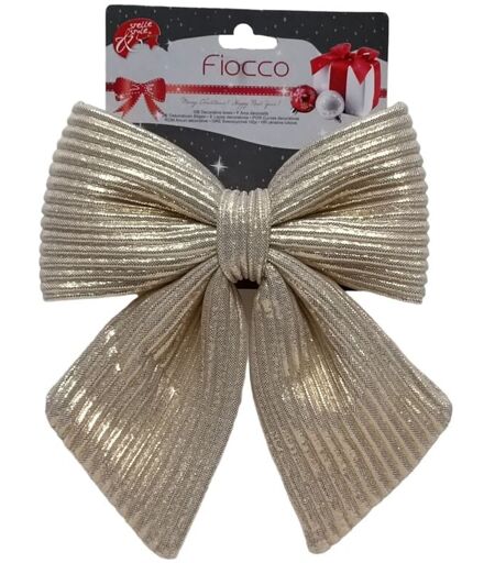 DUE ESSE CHRISTMAS - Fiocco in tessuto rigato decorazione natalizia per albero e ghirlanda dietro porta -44 cm / Oro