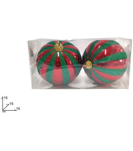 DUE ESSE CHRISTMAS Palle Tonde 15cm 2pz Rosso Glitter Verde In Box Pvc Di Dueesse Christmas