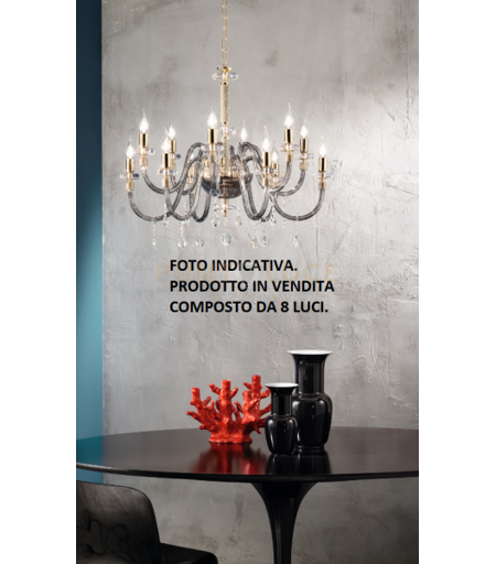 Ondaluce Lampadario Dido 8 Luci Fume' E Oro Attacco E14 D.83cm