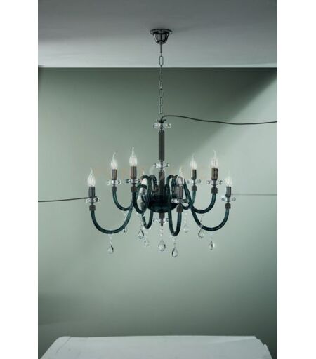 Collezione In Vetro Lavorato A Mano, Condettagli In Cristallo Ottico. Finiture In Metallo Sia Cromo Che Oro.Disponibile In Diversi Colori. Lampadario Sospeso 8 Luci Attacco E14, Lampadine Non Incluse. ...