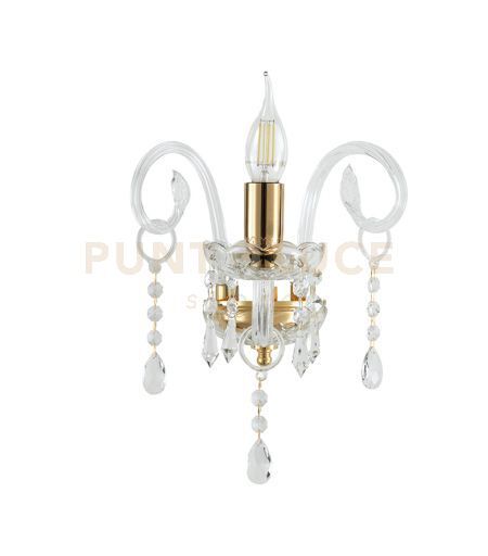 Collezione In Vetro Lavorato A Manocon Finiture Oro E Cristalli Trasparenti. Applique Composto Da 1 Luce Attacco E14, Lampadine Non Incluse. Larghezza 20cm. ...