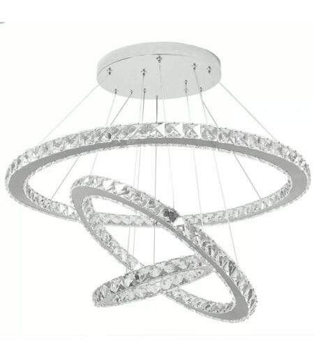 Il lampadario a sospensione moderno LED con 3 cerchi in cristallo è perfetto per chi cerca eleganza e funzionalità. La struttura regolabile consente di personalizzare la disposizione dei cerchi per adattarsi a qualsiasi ambiente, creando un effetto visivo unico. Il LED integrato assicura un'illuminazione efficiente e a basso consumo, perfetto per illuminare grandi spazi.. Specifiche:. Potenza: LED integrato. Materiale: Cristallo e metallo. Numero di cerchi: 3. Colore luce: Bianco caldo. Efficienza energetica: A+. Contenuto confezione:. 1 Lampadario LED con 3 cerchi. Kit di montaggio ...