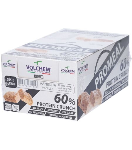 Volchem Srl VOLCHEM Promeal Protein 60 Barretta Proteica 60% Non Ricoperta Di Cioccolato Gusto Cacao 20x40 g