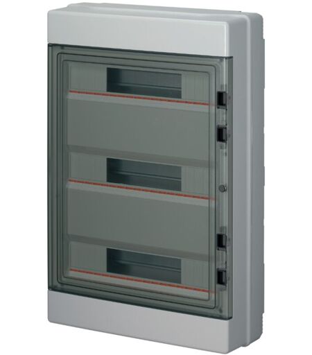 ELETTROCANALI Centralino da parete, 54 (3x18) moduli, con morsettiera 6x10mm, grigio, IP65, sportello in policarbonato fumè - EC62054E