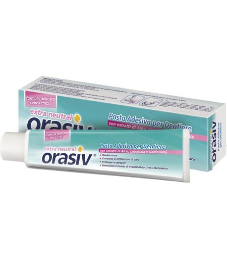 orasiv - Pasta Adesiva - Descrizione Dispositivo medico indicato per far aderire e trattenere la protesi dentale ancorata alle gengive dell'utilizzatore. La pasta adesiva contiene estratti di origine naturale. La pasta limita le infiltrazioni di cibo e aumenta la stabilità della protesi alle gengiv… ...