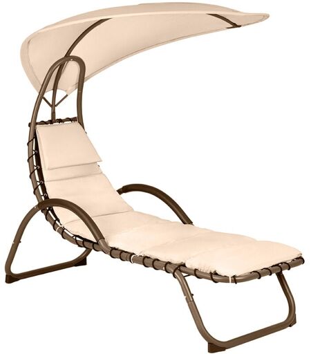 Hortan Lettino Sdraio Prendisole Con Cuscino Imbottito, Seduta Ergonomica, Tetto Parasole e Telaio In Acciaio Inossidabile - Beige