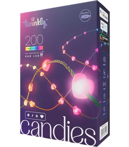 TWINKLY - Ghirlanda cuore connesso IP20 12m 200 led rgb filo verde candies