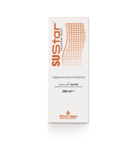 SUStar SOLUZIONE ORALE Integratore alimentare multivitaminico con Carnitina, Ferro e BIO1PED (Associazione di nutrienti con valenza glucidica, proteica e vitaminica). Prodotto per sostenere la vitalità con un apporto nutrizionale bilanciato. Il ferro contribuisce alla normale formazione dei globuli… ...