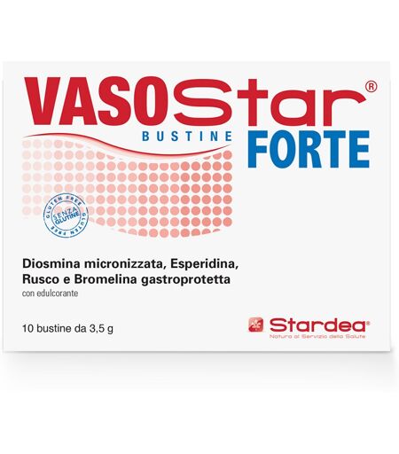VASOSTAR FORTE BUSTINE - Descrizione Integratore alimentare a base di diosmina micronizzata ed esperidina ad elevata purificazione, rusco, bromelina e ananas gastroprotette, vitamina C e resveratrolo. Il rusco favorisce la funzionalità del microcircolo (alleviando la pesantezza delle gambe) ed aiut… ...