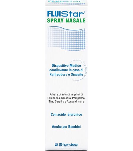 FLUIStar SPRAY NASALE - Descrizione Dispositivo medico a base di estratti vegetali ed acqua di mare in soluzione Ipertonica indicato per il trattamento dei sintomi di raffreddore e sinusite. Il prodotto è una soluzione che, con presenza di acqua di mare in soluzione ipertonica, favorisce il lavaggi… ...
