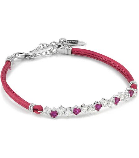 Bracciale Da Donna Di Boccadamo Della Collezione Sophie. Bracciale In Argento Con Cordino In Pelle Di Colore Bordeaux E Zirconi Bianchi E Fucsia. Misura: Lunghezza Cm 16 Estendibile Fino A Cm 19,5. Dimensione: Centrale Cm 4,2. Chiusura: Moschettone . La ...