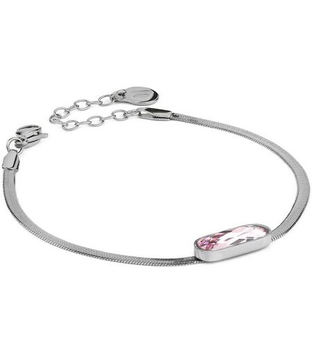 Bracciali Da Donna Di Boccadamo Della Collezione Jolie Della Linea Mya. Bracciale In Acciaio A Maglia Piatta Con Cristallo Sfaccettato Centrale Di Colore Rosa Pesca. Materiale: Acciaio. Misure: Lunghezza Cm 17 Estendibile Fino A Cm 19,5. Dimensione: ...