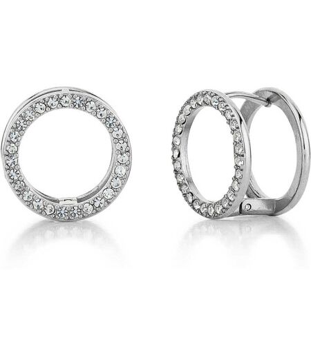 Orecchini Da Donna Di Boccadamo Della Collezione Yo Yo Della Linea Mya. Orecchini In Acciaio Rodiati A Forma Di Cerchio Vuoto Disegnato Da Strass. Materiale: Bronzo. Misure: Diametro Cm 1,3. Dimensione: Zirconi Mm 2. Chiusura: Scatto A Cerniera. , ...