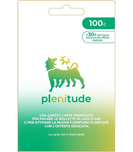 La Carta Prepagata Plenitude è comoda, pratica, senza costi di attivazione. Usala per pagare le tue bollette luce o gas o regalala a chi vuoi. È valida su tutte le offerte luce o gas Plenitude, su tutti i metodi di pagamento e su tutte le voci di costo della bolletta. E se attivi una nuova fornitura con l'offerta dedicata, ricevi 30€ di credito extra. ...