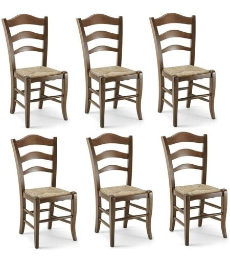 OKAFFAREFATTO Set 6 sedie Montanara in legno massello noce scuro seduta in paglia casa hotel