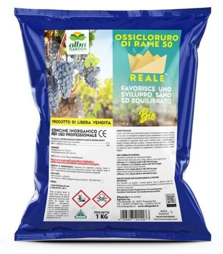 ALBAGARDEN - Ossicloruro di Rame 50% Concime ce Blu Biologico per Vite Orto Olivo Colture da Frutto Fragola x 1 Kg