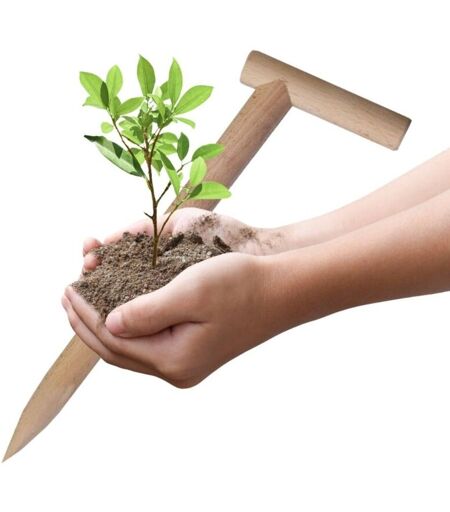 ALBAGARDEN Piantatore per Orto Giardino in Legno Naturale Foraterra o Trapiantatore Manuale Per Piantine Resistente Leggero 44 x 13 x 3 cm