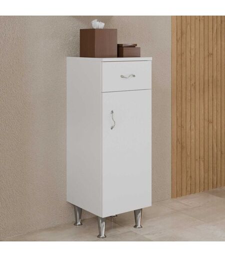 KIAMAMI VALENTINA - Mobiletto Per Bagno a Terra Con Anta e Cassetto Bianco Lucido Easy
