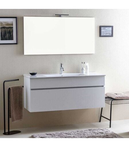 KIAMAMI VALENTINA - Mobile Bagno Moderno Bianco Legno Con Lavabo Da 120 Cm e Specchio Sole