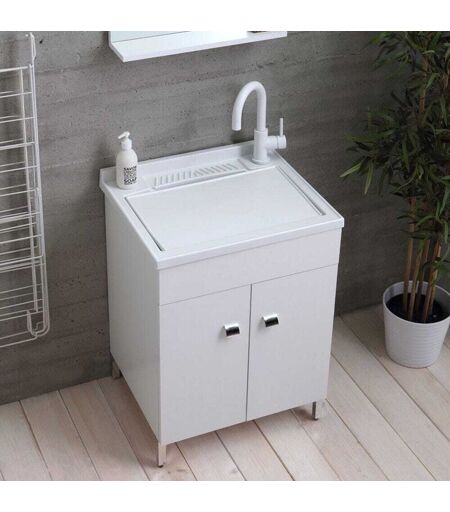 KIAMAMI VALENTINA - Mobile Lavanderia 60X50 Cm Bianco Con Lavandino In Resina Profondo