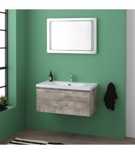 KIAMAMI VALENTINA - Mobile Bagno Con Cassetto Colore Cemento e Specchio a Led Integrato Madrid