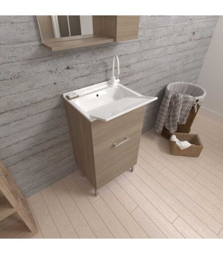 PILOZZA CON MOBILE ESSENZA QUERCIA NATURALE 45X50 CON TAVOLA LAVAPANNI KvStore amplia il suo assortimento di lavatoi, tra cui la pilozza con mobile 45x50 con tavola lavapanni . Un mobile pensato per svolgere una funzione di servizio, ma che grazie alla nuova finitura in essenza quercia naturale può essere facilmente inserito anche a completamento del bagno principale. Il modello che vi presentiamo si caratterizza per le dimensioni compatte, con una larghezza di appena 45cm . La struttura del mobile ad un'anta è in legno nobilitato con una bordatura in abs. I piedini hanno un'altezza di 10cm, sono regolabili e come la maniglia, hanno una finitura cromata. La vasca è in polipropilene ed ha una profondità di 26,5cm, completa di tavola lavapanni in abs asportabile. dimensioni: larghezza 45cm , altezza 83cm , profondità 50cm finitura effetto legno quercia naturale strofinatoio in abs I lavatoi Pratico non sono predisposti con il foro per la rubinetteria, questo permettere al cliente di ...