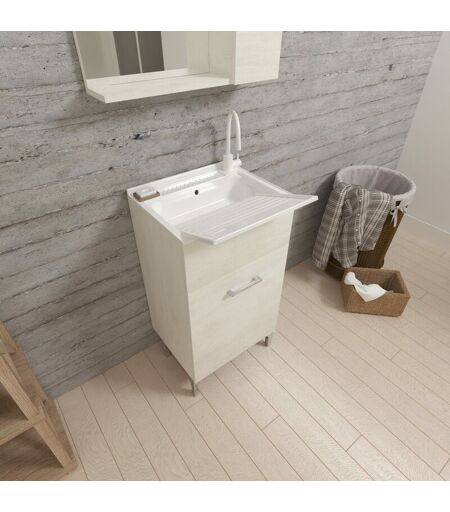 KIAMAMI VALENTINA Mobile Lavatoio 45X50 Essenza Quercia Bianco Con Asse Lavapanni Pratico