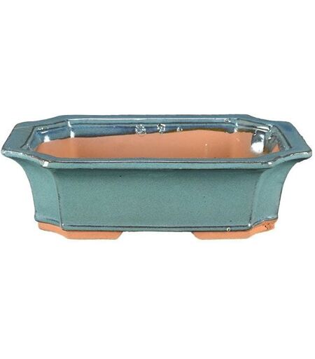 VASO PER BONSAI RETTANGOLARE IN GRES SMALTATO VERDE 20,5x15x5 cm - G223b. Vaso per bonsai rettangolare in gres smaltato verde, di manifattura cinese. Presenta ampi fori per il drenaggio e fori dedicati per il passaggio del filo allumino-ramato per la legatura della pianta. Il vaso presenta le seguenti misure: • esterno: 23,5x18x7 cm; interno: 20,5x15x5 cm. ...