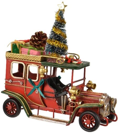 Kaemingk Macchina natalizia in ferro con albero, pigna e regali, decorazione per villaggio di Natale da 17 cm -Verde
