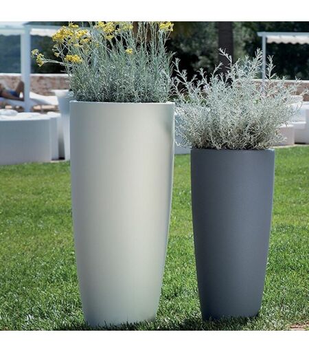 DECOR SPACE Vaso Cromia Stilo rotondo e alto tinta unita per esterno ed interno "Made in Italy" -Ghiaccio / Ø 33 x h 70 cm