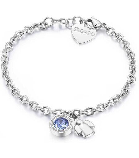 Bracciale Da Donna Di Sagapò Della Collezione Lucky Light. Gioiello In Acciaio Con Angioletto E Swarovski. La Referenza È Skt13, Materiale Gioiello: Acciaio, Argento 925, Bigiotteria, Oro, Pelle; Pietra: Acquamarina, Cristalli , Diamante, Diamante Di ...